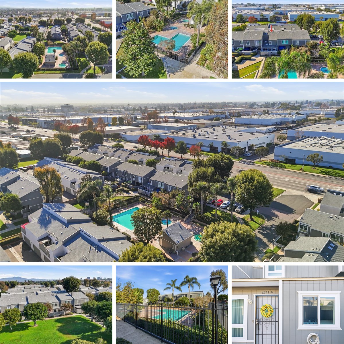 NEW ROOF (approximately 2 months old)! Turnkey townhome located in the highly desirable Village Walk Townhome community featuring 2 bedrooms and 1.5 bathrooms with vaulted ceilings and abundant natural light. The bright, open floor plan offers quartz countertops with a tile backsplash, a chandelier over the kitchen sink, step-in pantry, recessed lighting, and under-cabinet motion-sensor lighting. The living area is enhanced with wainscoting, crown molding throughout, new baseboards, tile flooring on the main level, and carpeted stairs and bedrooms. The upstairs bathroom features tile flooring, and the primary bedroom includes a walk-in closet with mirrored door. Additional highlights include solid core interior doors, mirrored bypass closet doors, newer windows and sliding glass door (approximately 2 years old), real wood decking freshly painted as a custom upgrade, ceiling fan in dining area and attic access. The home also features a Ring doorbell (to remain), security door, Google Nest thermostat, electric tankless water heater (approximately 3 years old), and central AC (installed 2010). The 2-car attached garage offers direct access (with exterior keypad entrance too) and interior laundry hookups. Community amenities include a pool and landscaped greenbelts. Conveniently located near South Coast Plaza, Segerstrom Center for the Arts, OC Fairgrounds, major freeways, John Wayne Airport, and the coastal destinations of Newport Beach and Huntington Beach.