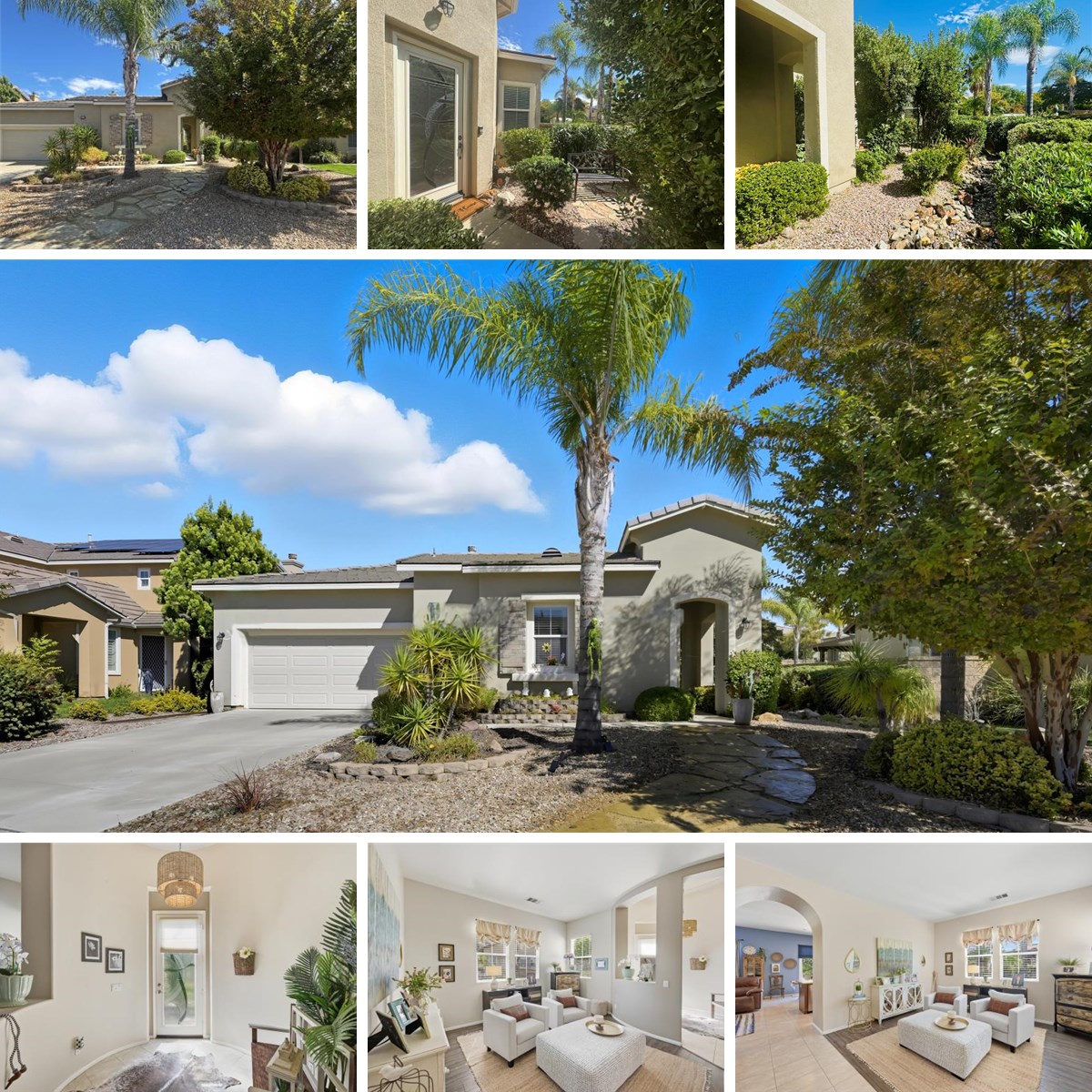 Gorgeous, turnkey home in coveted Temecula Creek North. Nestled just a few minutes from the wineries, and sitting on a lovely, quiet culdesac, this home is essentially a single story, with only one bonus room and bath upstairs, offering an extremely desirable floor plan for family living. As you enter this residence, you’ll love the custom front door with a carved glass inlay that opens to a formal, circular entry. The home offers many unique architectural touches throughout, like archways and recessed lighting, custom paint and window coverings, a stacked stone fireplace and media niche, ceiling fans throughout, and an amazing overall use of space. The large kitchen features granite slab countertops, ample natural cherry cabinetry, and includes stainless steel appliances. The dining area has a brand new sliding glass door with a custom pet-door that opens to the stunning backyard. There are three large bedrooms on the first floor, with a primary boasting a spa-like en-suite bath with dual sinks, a vanity area, a soaking tub, a gorgeous shower, and a huge walk-in closet with built in shelving. It also has a private entrance to the backyard! Another large spare room with a secluded entry hall also has its own en-suite bath, perfect for guests or in-laws. The third downstairs bedroom is currently being used an office but, with a closet, it can be used as another bedroom. The upstairs features a huge bonus room with its own bath and a walk-in closet. Perfect for a teen, a play room, a theater room, or a project area! The backyard is a scene from a magazine. A gardeners paradise, the yard offers a large, covered pergola for entertaining, a beautiful waterfall, a large fire pit area, and thousands of square feet of pristine landscaping. Both front and back! With a powder bath and a fully built out laundry room with a sink, this home has it all. Schedule a private showing today! * Seller just replaced the AC, with a warranty of 20 years.